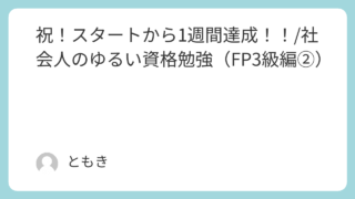 FP3級 祝!スタートから1週間達成!!/社会人のゆるい資格勉強(FP3級編②)